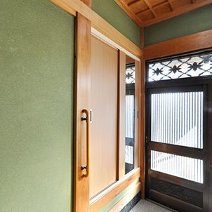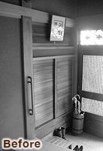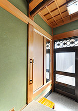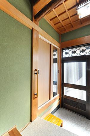不足していた玄関収納は、長押まで高さを広げ収納スペースをアップ!建具は既存の柱や長押と色を合わせました。