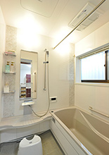 在来工法のお風呂からシステムバス(タカラ/レラージュ)へ。窓ガラスをペアガラスに交換し、浴室暖房も導入して暖かく快適なお風呂に。入口の段差も解消して安心安全にバスタイムが楽しめます。