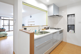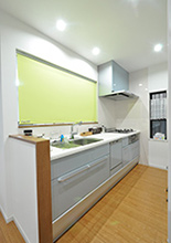 キッチン・リビング・ダイニングとすべて床暖房を設置。キッチンとリビングダイニングは、ドアとロールスクリーンでしっかり仕切れるので、効率よく温まります。