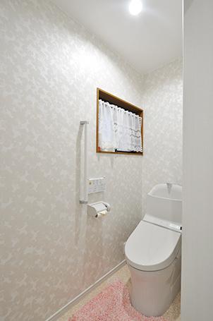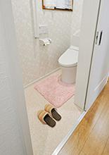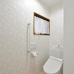1階のトイレは段差をなくしバリアフリーに、2階は入口前を広くとり、廊下から入りやすいように新設。便器は1階がTOTOのGG1-800、2階はピュアレストQRをチョイス。どちらも節水型でお手入れもしやすい人気商品です。