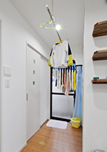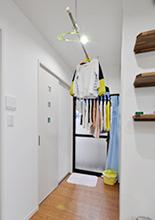キッチン横のスペースは室内物干しスペース。洗面脱衣室・キッチンと移動がしやすく家事も楽です。