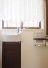 TOTOのピュアセレクトQRをチョイス。コーナー収納キャビネットを設置することで収納力をアップしました。