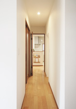 ゆったり広々とした玄関ホール。そこからLDKへと続く廊下もバーチ色のフローリングで統一し、明るさを確保しました。