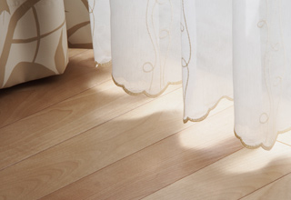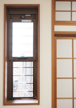 少しでも採光を確保するために、南面にタテ型の窓を設置。採光と一緒に風の道もでき、快適な空間となりました。また、フローリングは明るい色味のバーチ色を採用しました。