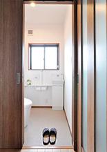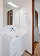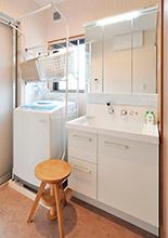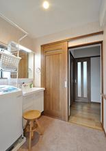 以前キッチンがあったところに洗面脱衣室を。主寝室の隣となりましたが、作業動線としては便利な位置に。洗面化粧台は1階同様LIXILのピアラ。