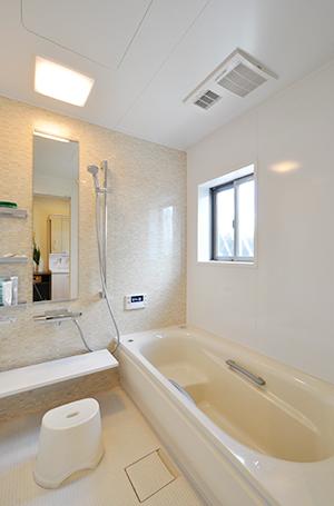 浴室・洗面脱衣室・トイレの水まわり3点は、広くスッキリと使えるよう旧北側の和室にすべて移動。1坪サイズのユニットバス(TOTO/サザナHSタイプ/1616サイズ)だから、ゆったりとバスタイムが楽しめます。