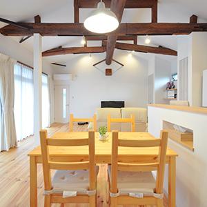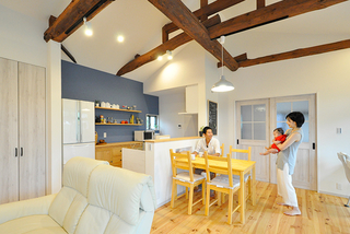 モアリビングはホームページの事例を見て、いいなぁと思って直接電話をしました。その時の担当営業さんの対応がすごくよかったので、ここでやりたいと決めていました。妻が出産に備えて実家の新潟へと帰っていたのですが、完成イメージを3D画像で立体的にわかりやすく提案してくれたので、仕様決めなどは、直接お会いできなくてもやり取りができて助かりました。 梁と無垢床と広いLDKはイメージどおりで抜群にいいです!妻も『広いLDKなので、ベビーベッドが置けるし、将来はスベリ台とかも置けるのがいい!』と喜んでいました。