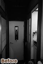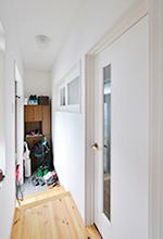 こげ茶色だった既設の窓やドアはホワイトに塗装。コストを抑えつつ、パインの無垢フローリングと馴染むように。