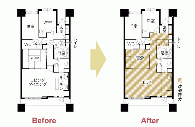 | リフォーム箇所 | キッチン、リビング、ダイニング、トイレ、書斎 |