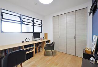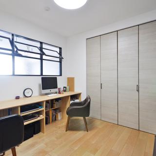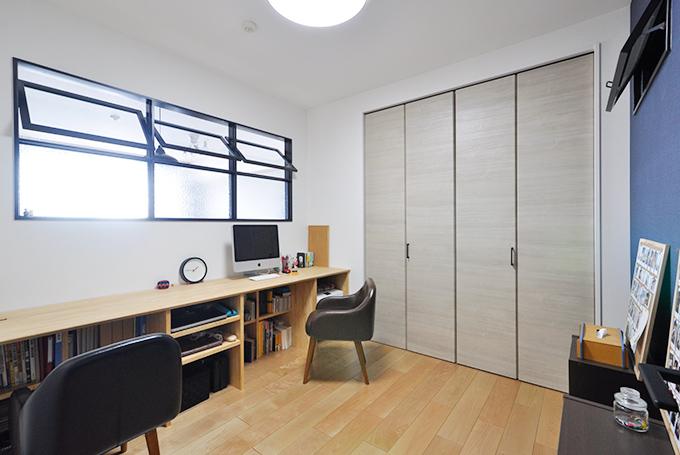 和室から洋室に。奥さまがお仕事で使えるように造作でカウンターも設置。内窓をリビング側とウォークインクローゼット側の両方に設置したので風通りも良くなっています。