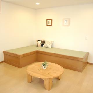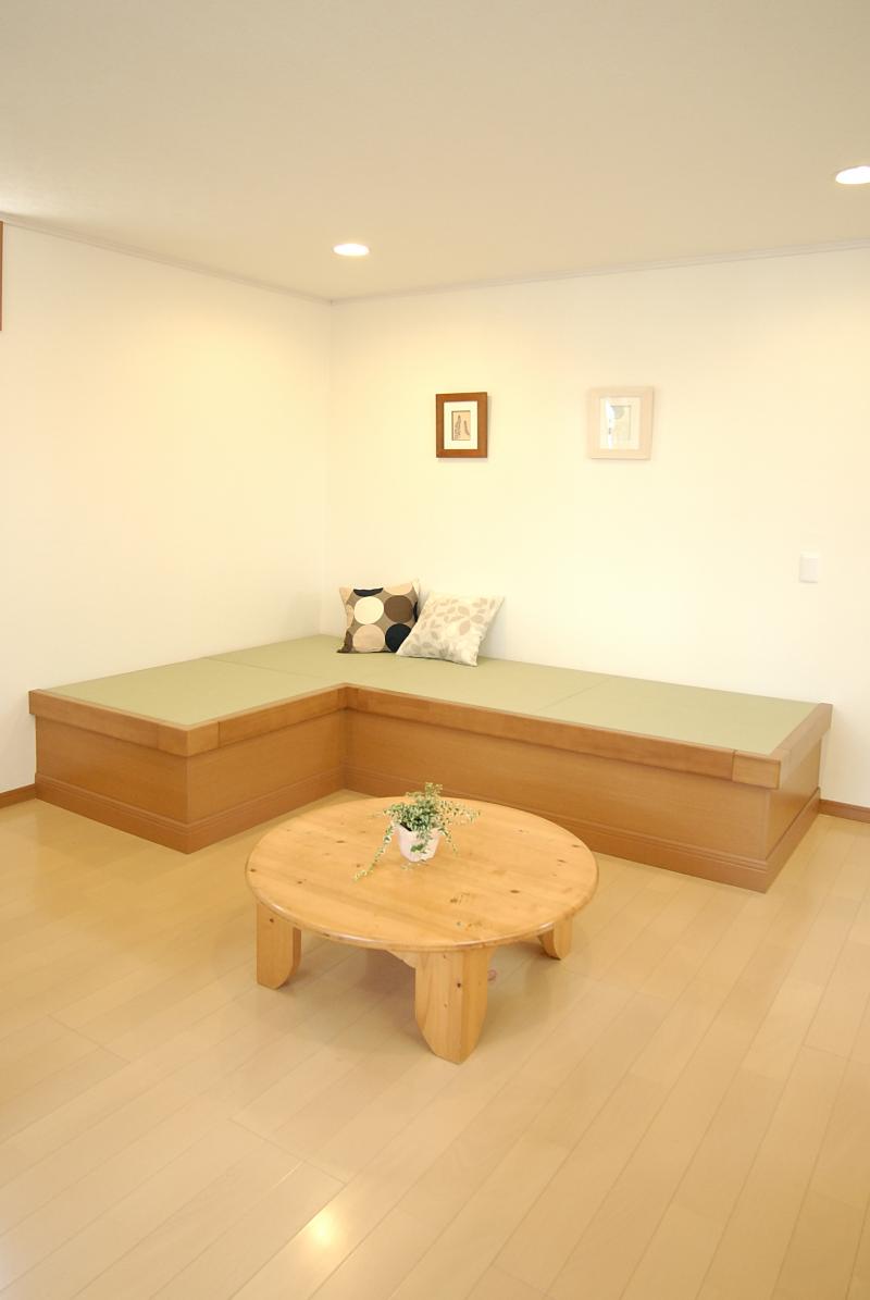 すると、壁面を活用した畳コーナーを設ける事で、落ち着きのあるゆったりとしたリビングコーナーが誕生しました。