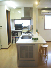 以前キッチンとバルコニーがあった部分にリビングスペースを、その反対部分にキッチンとバルコニーを移設しました。