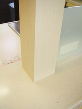 キッチン側に出てきた抜けない柱も、違和感なくキッチンに交わるようプランニング。柱を囲んでキャビネットがくるように配置し、人工大理石のカウンターを切り欠いて、再び修復し継ぎ目がわからない程に磨き上げてもらいました。