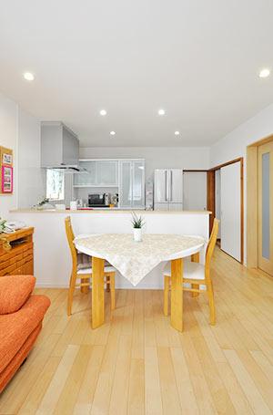 キッチンは垂れ壁をなくしてセミオープンに。お孫さんと並んでお料理が楽しめるよう、作業スペースの広いL型キッチンを設置。リビングと隣接する和室は、洋室に変えダイニングテーブルを並べて、大勢で食事ができるように。リビング、洋室ともに内窓を設置しているので、空間が広くなっても冷暖房がしっかりと効きます。