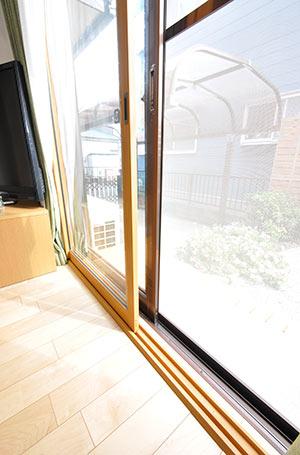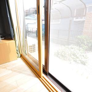 キッチンとの一体感が増し広々としたリビングダイニング。既設の窓には内窓を設置し、冷暖房対策もしっかりと。隣接する洋室との間の引き戸も、上吊りレール敷なしの建具なので、開けておけばワンルームのように使えます。