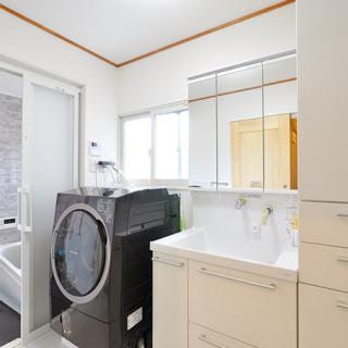 洗面化粧台は、リネンや着替えなどがたくさん収納できるTOTO/オクターブ(化粧台750+収納450)を選択。TOTOオリジナルの「きれい除菌水」を取り付け、歯ブラシや排水口が除菌できるようにしています。