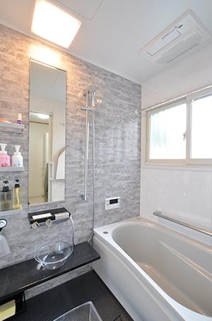 タイル貼りだった浴室は、ユニットバス(TOTO/サザナHSシリーズ1216)に変更。浴室暖房乾燥機も取り付けているので、冬でも温かなお風呂でバスタイムを楽しめます。