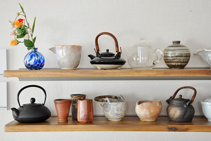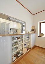 カウンター下はグラスや小皿などが仕舞える、扉付きの収納を造作しています。