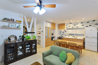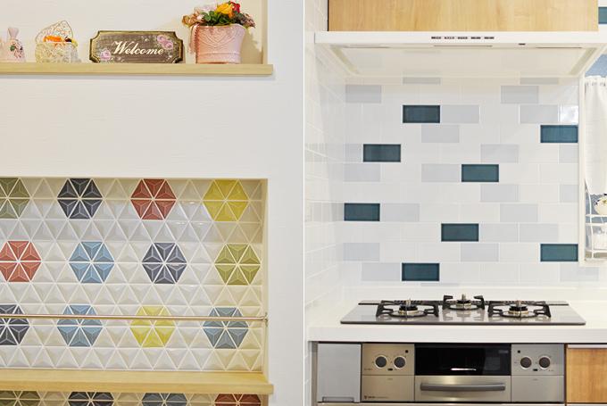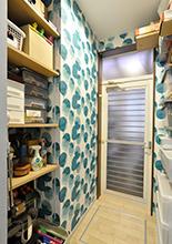 キッチンやパントリーは、奥様のセンスで遊心のあるタイルやクロスで楽しさを演出。気分もハッピーになるリフォームとなりました。