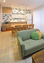 以前から桶庄(okesho)のことは知っていました。モアリビングはこちらに引っ越してきたあと、ガスの修理がきっかけで知りました。リフォームは見えないお金が大きいので、知り合いのところに頼みたいという思いがありました。他業社の中でもモアリビングの修理スタッフの印象が深く、リフォームもやっているということだったのでお願いしようと決めました。 キッチンは北側から南側に移動したので、とても明るくなりました。食器棚もキッチンのすぐ横に作ってもらったので、取り出しや片付けが楽になりました。