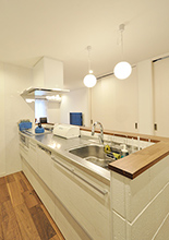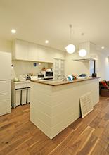 そこでアドバイザーからの提案を受け、キッチンを住まいの中央に大移動してLDKがひとつながりなるように間取り変更。構造上必要な補強壁の問題もクリアしつつ、希望していた「家族のコミュニケーションがとりやすいLDK」が実現し、ライフスタイルにあった理想の住まいに。