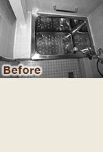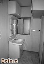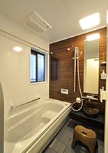 在来工法の浴室は、ユニットバス(TOTO/サザナHSシリーズTタイプ)にして1616サイズへとスペースを拡張。足を伸ばしてゆったりと入浴できます。構造上必要な壁を残しつつ、洗面室と脱衣室を分けることで広いお風呂が叶いました。