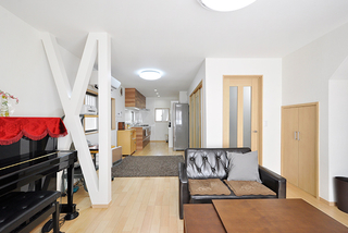 LDKは日当たりの良い南側の和室をつなげ、構造上必要な筋交い部分はあえてあらわしにして明るくて開放的な空間に。窓ガラスはすべてペアガラスに交換し、断熱性能もアップ。耐震補強の補助金や住宅ストック循環支援事業補助金をかしこく利用して、コスト面も抑えています。