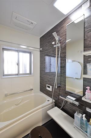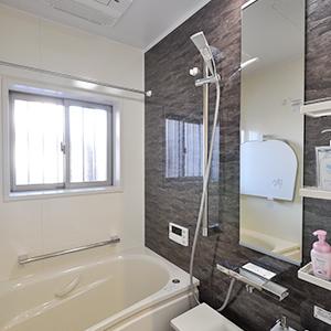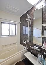 ユニットバスはTOTO/サザナ(HSシリーズ1216サイズ)に取替え。ジオブラウンのアクセントパネルが落ち着いた雰囲気を演出してくれます。