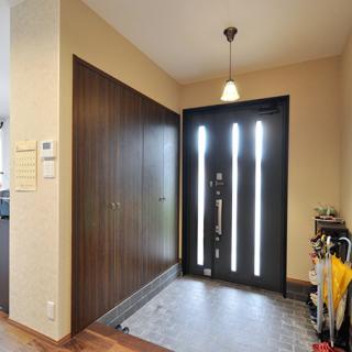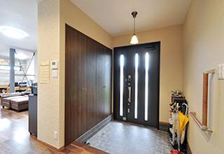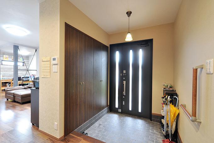 玄関はLIXIL/リシェント(断熱親子ドア)に取替え。玄関ホールとリビングとの間は壁をなくして、