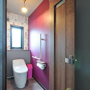 トイレは1階と同じLIXIL/プレアスLSリトイレとクロスをパープル×花柄にして統一感をもたせました。