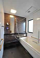 浴室はTOTO/サザナ(1818サイズ)に取替え。手すりを各所に取付けたり、洗面脱衣室との段差もフラットにして、入浴しやすいお風呂に生まれ変わっています。