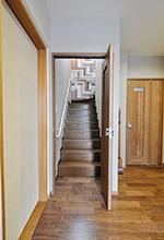 ひとつながりに。階段前には扉をつけて、冬の寒さ対策にしています。