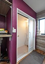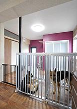 以前キッチンがあったLDKの北側には、ドッグスペースをレイアウト。ゲージが置ける充分なスペースとワンちゃん専用のシャワールームを新設。ゲージを置くことでLDKと区切れるよう計画しました。