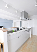 Ⅱ型キッチンで実現!シック&モダンな快適LDKリフォーム