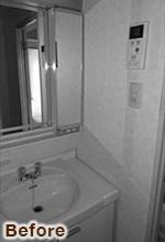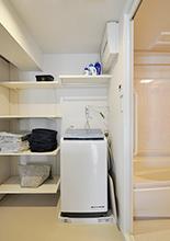 浴室は人気のTOTO/マンションリモデル(1316サイズ)に取り替え。洗面脱衣室だった場所は、脱衣室と洗面を別々にしてコンパクトに。キッチン側・廊下側と2wayで入れるので、食材のストックを置いたりと、パントリーとしても使えます。