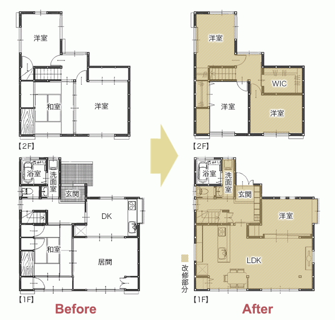 | リフォーム箇所 | リビング、ダイニング、キッチン、トイレ、玄関、洋室、子ども部屋、ウォークインクローゼット |