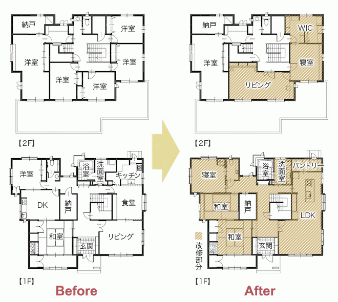 | 施工面積 | 1F:150㎡、2F:61㎡ |