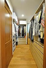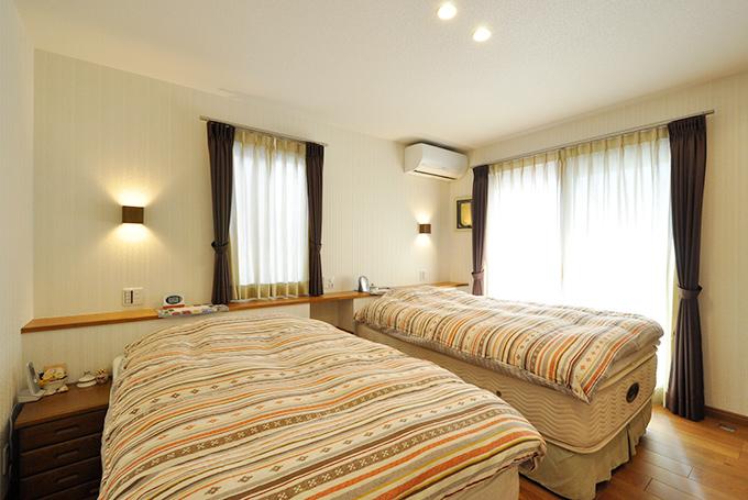 寝室はセカンドリビングと直接アクセスできる位置に配置。奥は廊下からもアクセスができるウォークインクローゼット。スペースにゆとりがあるので、ご主人と奥様のエリアに分け、収納や取出しをしやすくしています。