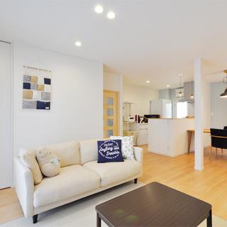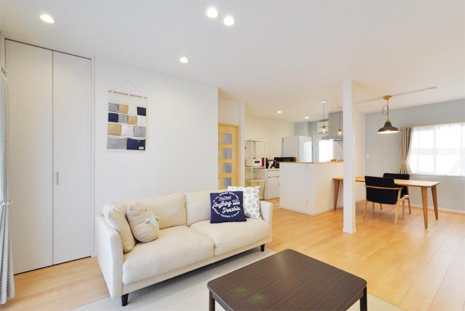 LDKは、リビングとダイニングキッチンの間にあった間仕切り壁や建具を取り払い、約16帖のワンルームに。洗面室と同じく白を基調としたナチュラルで優しい雰囲気のお部屋です。