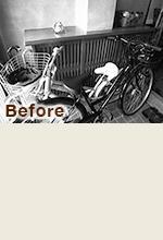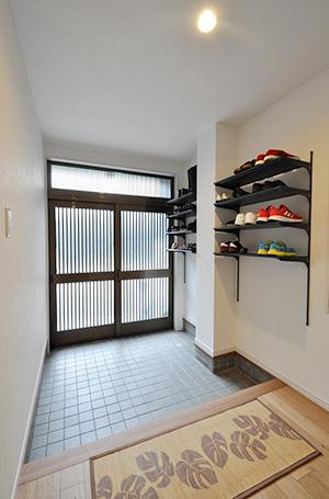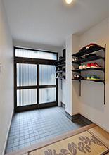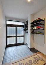 自転車を玄関に置くこともあるので、そうした状態になっても玄関収納が使えるように上部に設置しています。