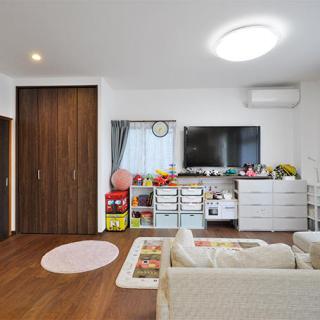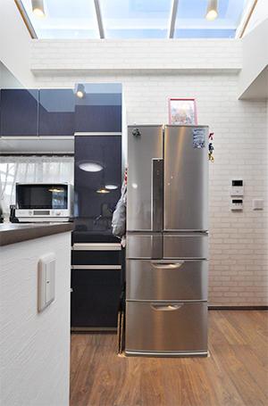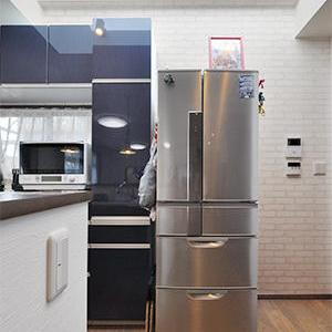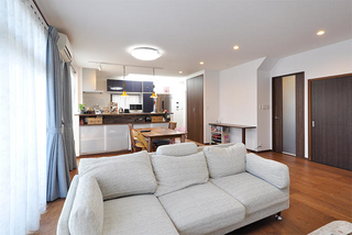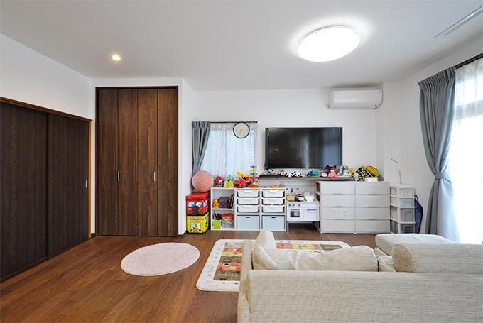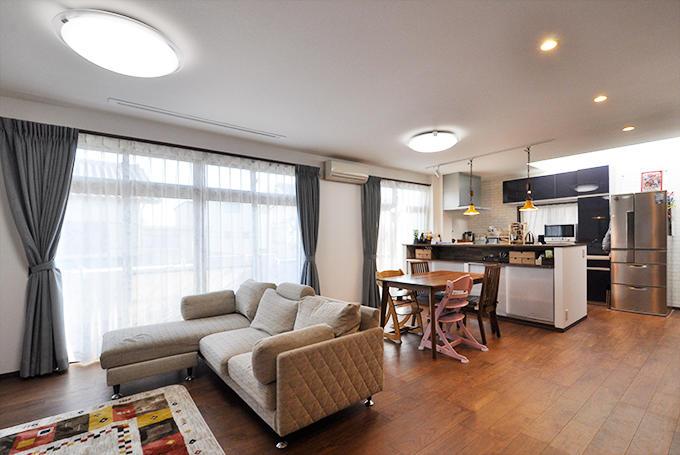 ダイニングキッチンとリビングを仕切っていた間仕切り扉を撤去し、つながりのある空間に。キッチンでお料理をしながらもお子様の様子が見られるようになっています。