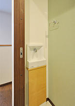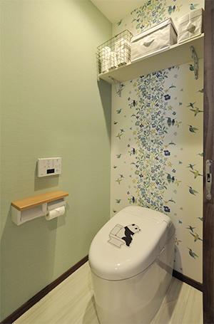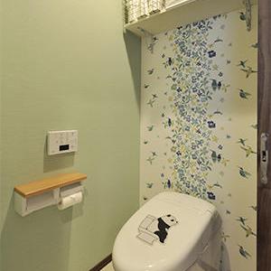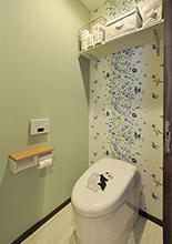 トイレは便器やノズルを自動で除菌してくれて、お手入れも簡単なTOTO/ネオレストRH1に取替え。以前物入れだった場所に移設し、小さなお子様でも手が洗いやすいよう、手洗い器を設置しています。