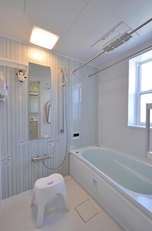 タイル貼りだった浴室は、ユニットバス(TOTO/サザナ)に交換。浴室暖房を取り付けているので、冬もポカポカのバスタイムが楽しめます。