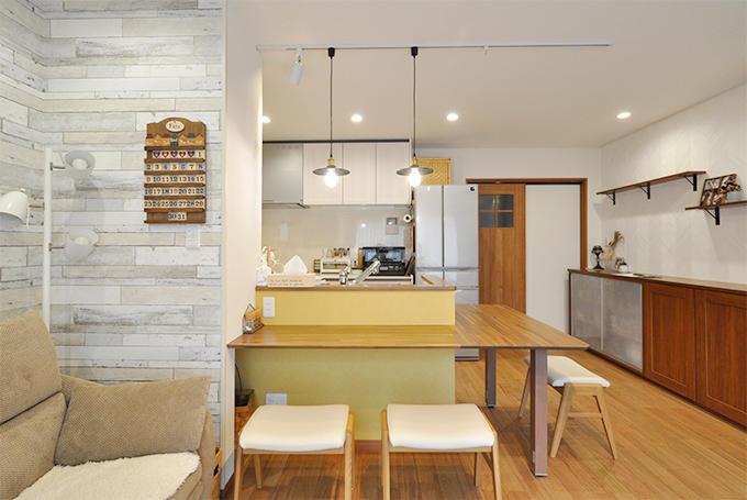 お子様が成長し、生活スタイルが変化したため、今の暮らしにあった住まいにリフォームしたいとお考えだったK様。4年前にお風呂、トイレ、洗面室は済ませているので、今回はLDKをメインに好みのインテリアや雑貨に囲まれ、大きなソファも置いてゆっくりくつろげる空間へリフォーム。