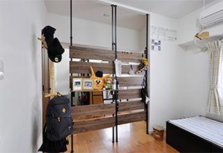 玄関を入って手前は兄弟のお部屋。パーテーションでゆるく仕切っているので、お互いの気配が感じられて、いつでもコミュニケーションがとれます。LDKに隣接する独立したひと部屋は娘さんの個室に。