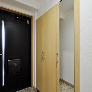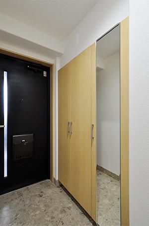 玄関収納は新しいもの(Panasonic製)に取替え。玄関タイルはそのままに、内装を一新しています。
