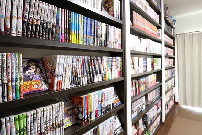 趣味で集めた漫画やフィギュアなどを飾り、ディスプレイとしても活用。