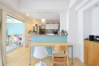 上のお子様の小学校入学を控え、「そろそろ分譲マンションに住み替え、個室も用意してあげたい」とお考えだったK様。中古マンションを購入し、生活スタイルに合わせてリフォームすることに。開放的で一体感のあるLDKは、キッチンの袖壁や吊戸棚を撤去し、和室だったスペースを取り込むことで実現。以前リビングだったスペースは間仕切りの建具を取り付け子ども部屋に。北東側の洋室とリビングとの間はウォークスルークローゼットにして、洋服や季節の物が収納できるようにしています。