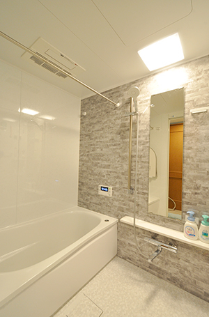 浴室はお掃除しやすく、保温性の高いTOTO/マンションリモデルWYシリーズ(1317サイズ)に取り替え。浴室温水暖房乾燥機も設置しています。