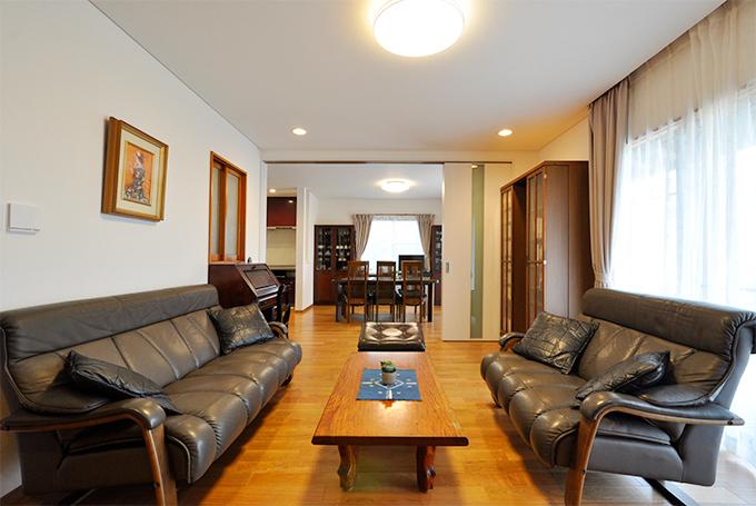 キッチンとの間にあった間仕切り壁を撤去しオープンに。どこにいても家族の様子がわかるので、コミュニケーションも取りやすくなっています。窓からの光がキッチンまで届くほど開放的な空間です。